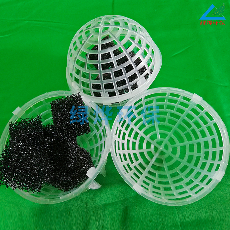 悬浮球填料系列由聚丙烯材料注塑而成,分内外双层球体,外部为中空鱼网状球体,内部为旋转球体。主要起生物膜载体的作用, 同时兼有截留悬浮物的作用,具有生物附着力强、比表面积大、孔隙率高、化学和生物稳定性好、经久耐用、不溶出有害物、 不引起二次污染、防紫外线、抗老化、亲水性能强等特点,在使用过程中,微生物易生成、易更换、耐酸碱、抗老化、不受水流影响、 使用寿命长,剩余污泥少,安装方便。